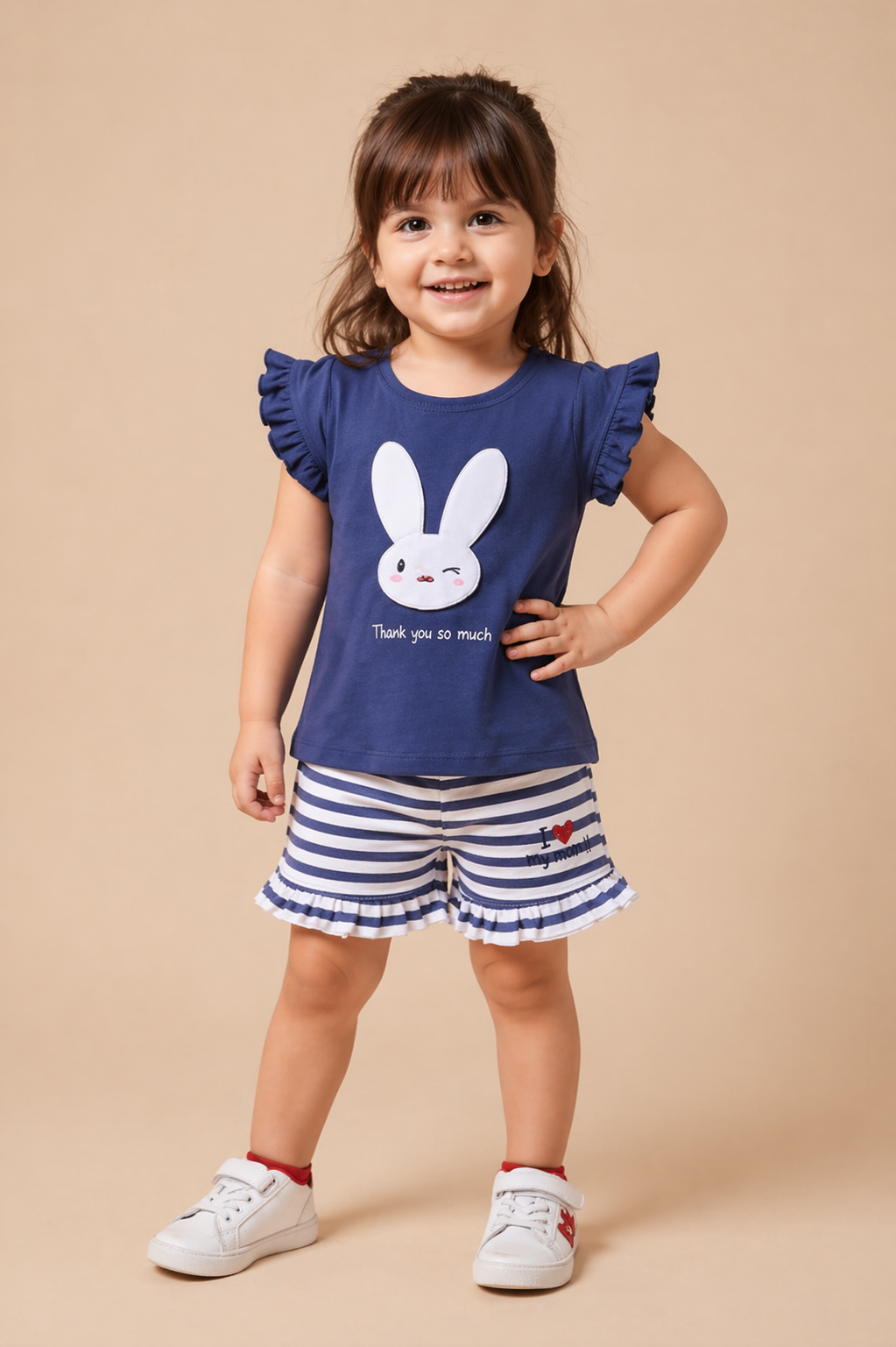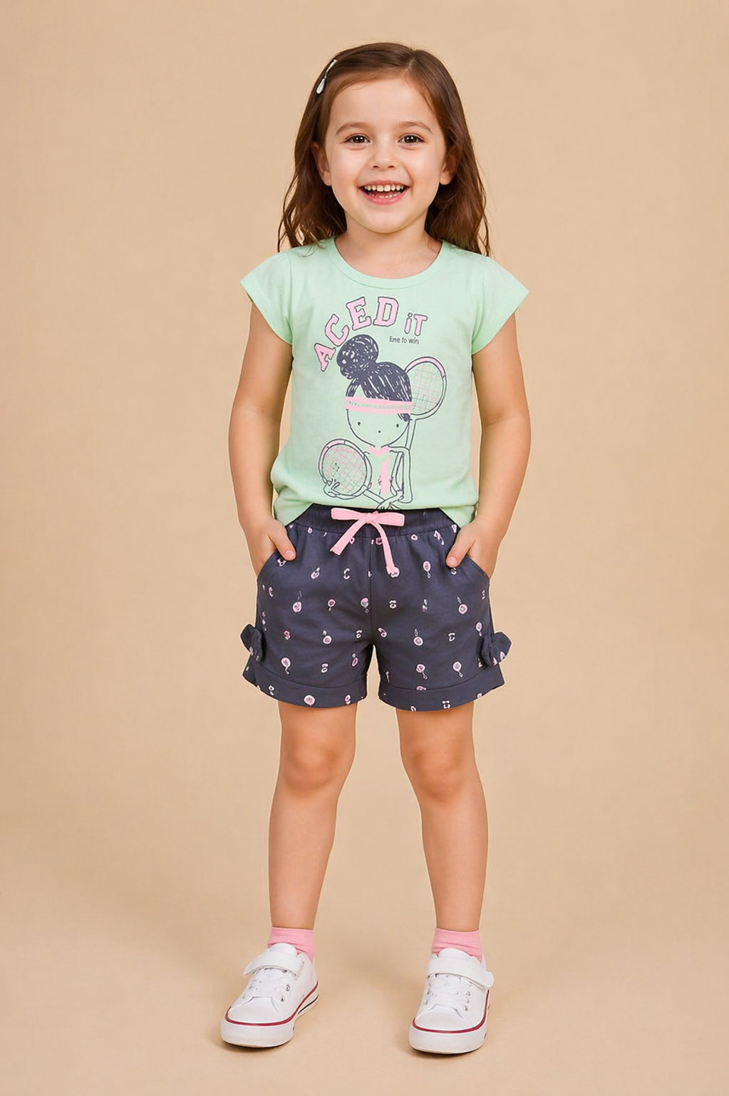 Girls Navy Blue Princess Top with Mint Green Shorts Set
