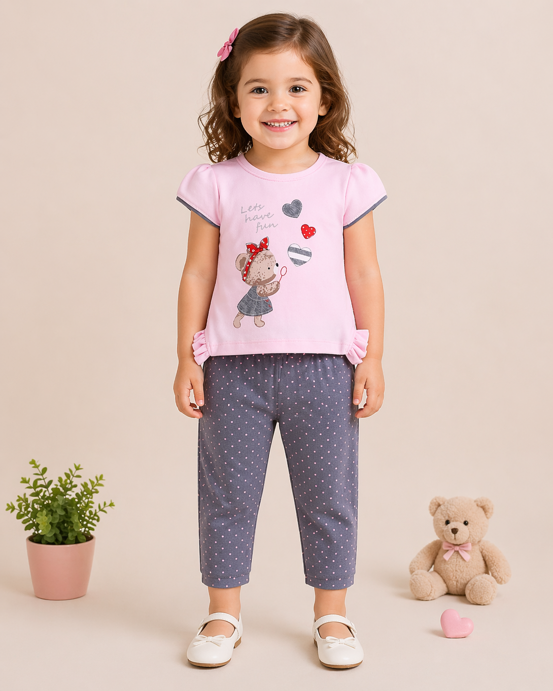 Girls Light Pink Bunny Co-ord Set with Jogger Pants