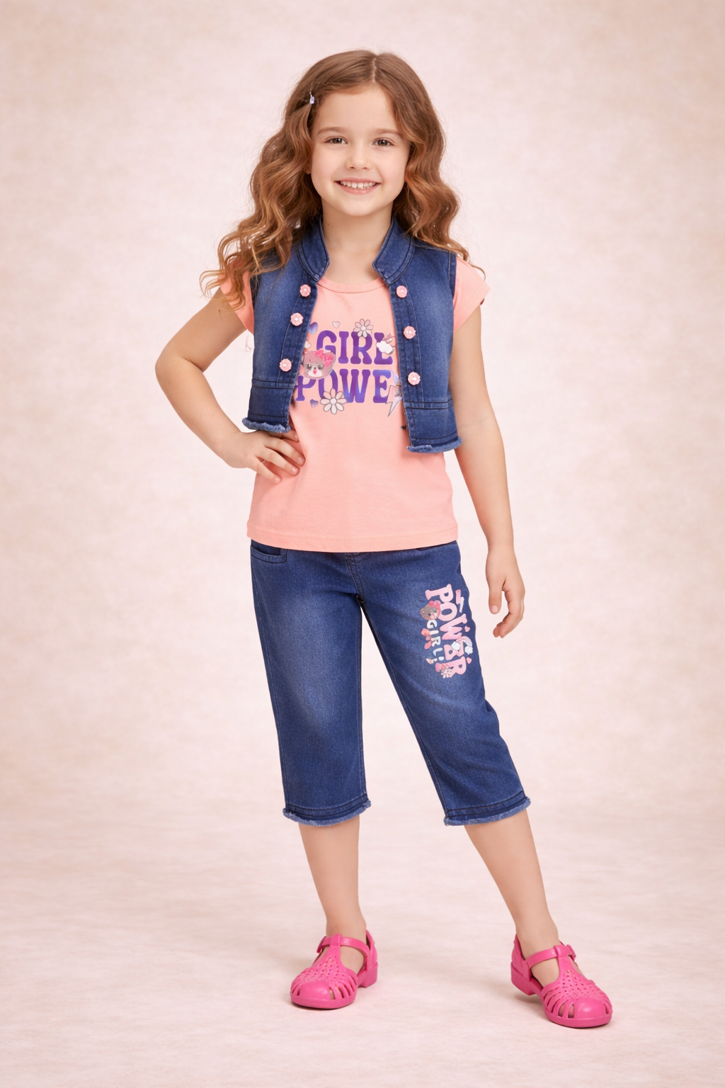 Trendy “Girl Power” Denim Co-ord Set for Girls
