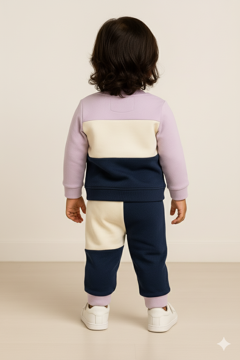 Lilac & Navy Bunny Co-ord Set for Girls | Winter Wear