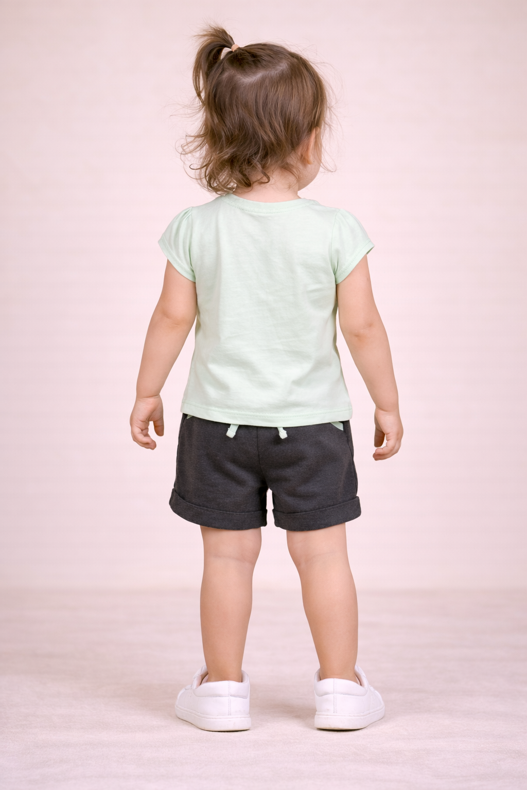 Fresh and fruity vibes for summer days! This cute graphic tee paired with relaxed shorts brings together comfort and playful design, making it a go-to outfit for sunny adventures.