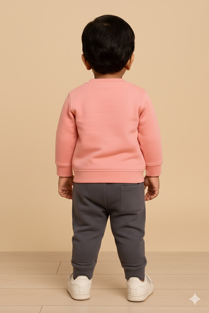 Bright, bold, and ready for adventure.This peach explorer sweatshirt set keeps your little boy cozy and confident — perfect for playful days and curious little minds.