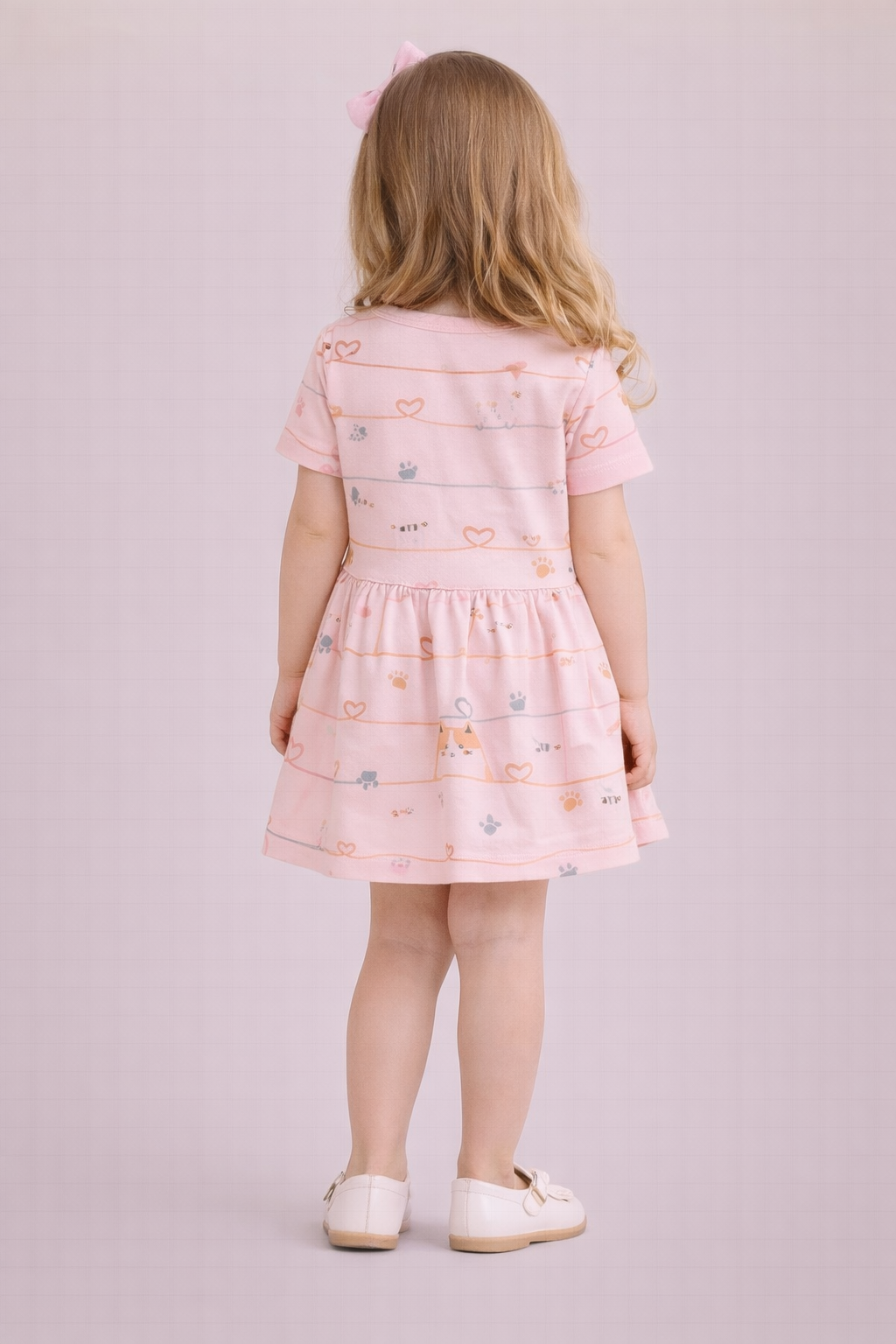 This charming pastel pink dress is designed to bring out effortless cuteness and comfort for your little one. Featuring delicate all-over prints, a front button placket, and a gently flared silhouette, the dress offers a graceful yet playful look.